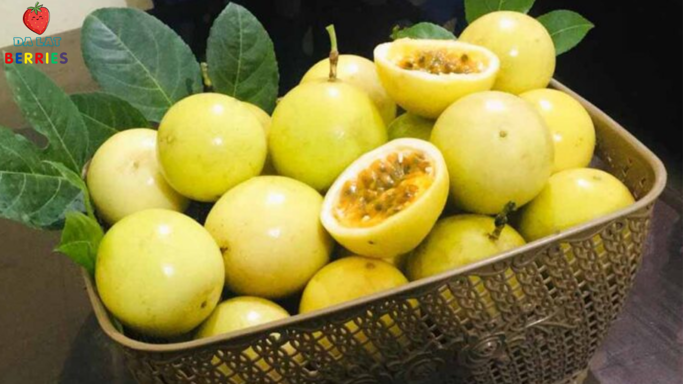 Đặc điểm: Có vỏ màu vàng óng ánh, kích thước lớn hơn chanh dây tím thông thường. Ruột quả nhiều nước, vị chua nhẹ xen lẫn ngọt thanh.
