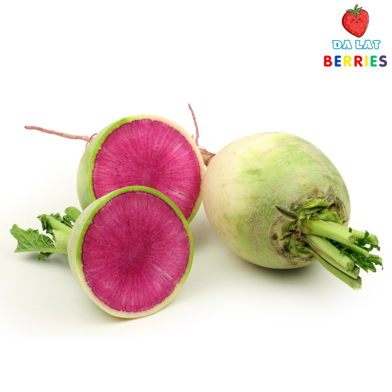 Củ cải ruột hồng có nguồn gốc từ Châu Âu, được du nhập vào Việt Nam và dần trở nên phổ biến. Loại củ này có kích thước tương tự củ cải trắng, với phần thân thuôn dài, vỏ màu trắng, phần ruột màu hồng cam rực rỡ. Củ cải ruột hồng có vị ngọt thanh, giòn sần sật và mùi thơm đặc trưng.